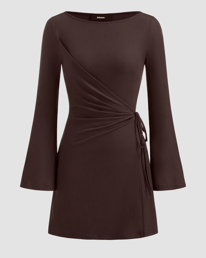Chocolate Side-Tie Ruched Full Sleeve Mini Dress