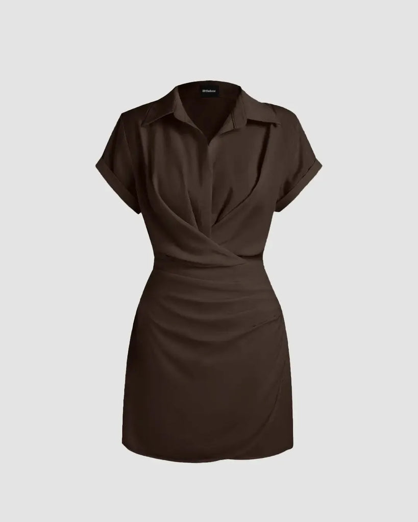 Be the first to review “Collar Wrap Buckle Dark Brown Mini Dress”
