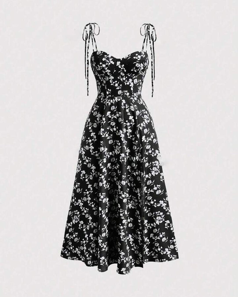 Step out in style with this beautiful Floral Print Knotted Spaghetti Strap Cami Dress, the perfect addition to your warm-weather wardrobe. This dress is designed to be both comfortable and flattering, featuring a fitted top and a gently flared skirt that hits above the knee.