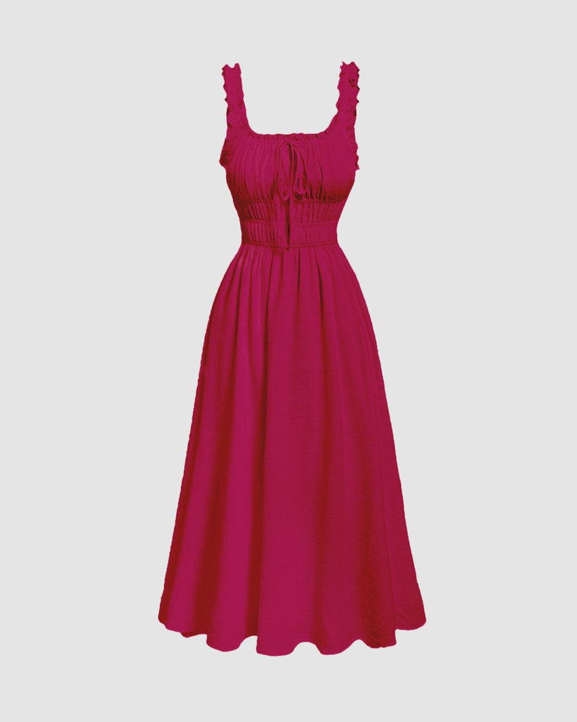 This Solid Frill Trim Tie Front Hot Pink Dress is the perfect way to add a bright, bold pop of color to your wardrobe. The eye-catching hot pink shade ensures you stand out from the crowd.