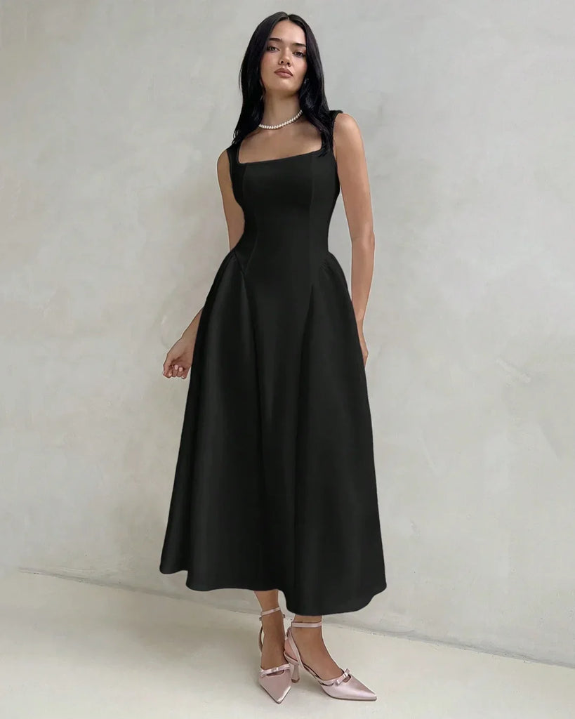 Be the first to review “Square Neck Sleeveless Fit & Flare Midi Dress in Black”