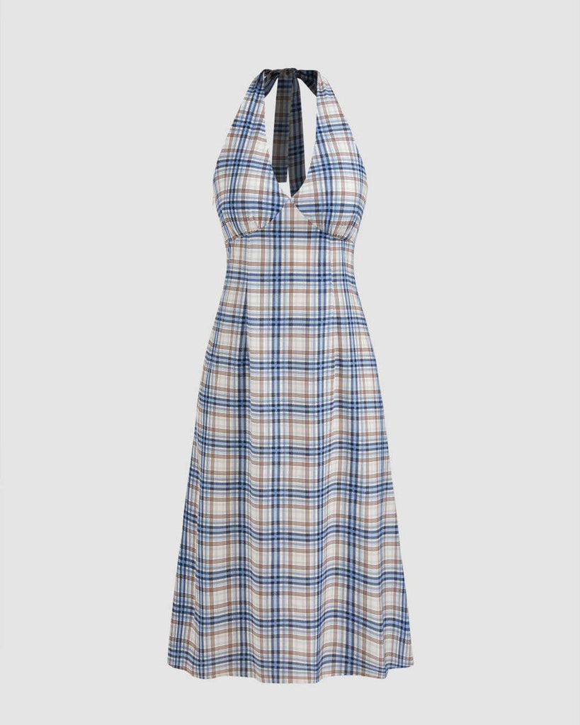 Woven Halter Check Knotted Midi Dress